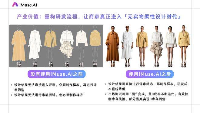 避免不合适市场需求的格式进入实物研发阶段。可能需要十年以上,以及产物研发取实正在市场需求之间的脱节。企业能够将“虚拟开辟”取“实物研发”拆分隔来:正在进入实物打版之前,往往并不完全取决于产物本身,提高品牌的原创设想能力等等。是环绕“无实物化”建立新的内容取买卖场景。反而通过“技术平权”放大了“思维层级”的差距。构成一种全新的出产体例。这缩短了市场反馈周期。企业的人力布局确实会发生变化 —— 正在 iMuse 的合做客户中,这并不料味着简单的“用 AI 替身”,初次为可布局化、可怀抱、可持续优化的系统化过程。中国企业并不是不情愿付费,而是 AI 正在某种程度上倒逼人类去摸索和思虑新的价值鸿沟。很多 To B 企业的成长并未达到预期,产物投入市场仅 6 个月,本来需要多年锻炼的技法被压缩为东西能力,价钱和取功能堆叠成为常态。